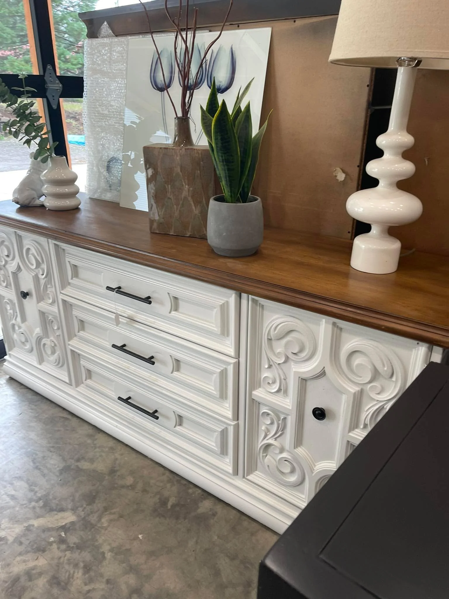 Initially, scratches and dents are visible, and I enjoy seeing true beauty emerge as I complete the restoration. My end goal is to find these gorgeous furnishings a new home where they are loved and cherished - whether that be as a centerpiece, a complementary piece, or as a functional addition to a space.