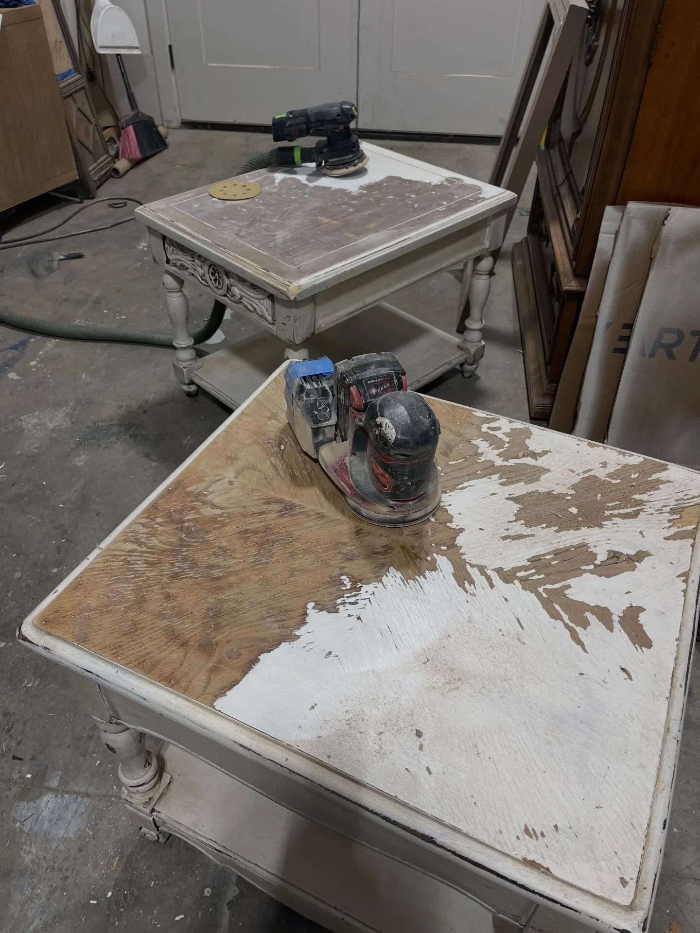 You provide a piece of furniture to be sanded and repainted.